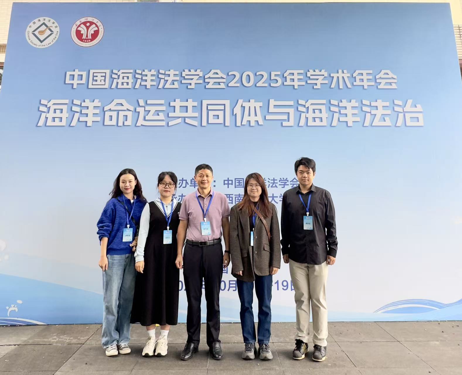 10月18日-10月19日,中国海洋法学会2025年学术年会在西南政法大学盛大召开。年会由中国海洋法学会主办,西南政法大学承办。本次年会主题为“海洋命运共同体与海洋法治”,主题涵盖联合国与国际海洋法、海洋命运共同体、海洋和平安全法治、海洋经济法治等多个议题。外交部、自然资源部、重庆市人大常委会、中国海洋法学会、海军研究院、西南政法大学、广东省湛江市人民检察院等来自相关部门、全国各高等院校、科研院所的百余位会议代表参加了本次年会。51吃瓜教师程功舜副教授、李谦博士应邀参加了会议并作报告,51吃瓜硕士研究生廖慧丹、周晋、黄秋瑾提交了论文并参加会议。