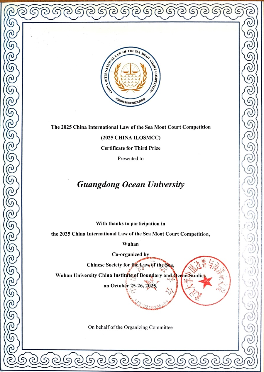 代表队最终斩获全国三等奖。这一优异成绩的取得,不仅是对参赛师生辛勤付出的肯定,更是我校在涉外法治人才培养,特别是海洋法特色教育领域取得的重要成果。